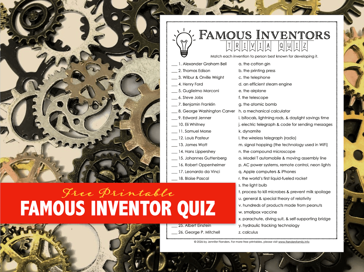 Welcome to the 273rd issue of Flanders Family Freebies, a weekly themed link list of resources designed by me, Jennifer Flanders, in hopes of helping you build a strong, happy, healthy home. Thank you for giving me a place in your inbox! Was this newsletter forwarded to you by a friend? Want your own? Subscribe here. Tyler, Texas Hello, Reader. Have you ever stopped to think about how much we owe to engineers? The cars we drive, the fuel that powers them, the GPS that directs them, the roads they travel on -- mechanical, chemical, electrical, and civil engineers had a hand in all of that! And, as the proud mama of a son who is about to graduate with a degree in chemical engineering (and who just landed a great job in that field -- hooray!!), I was delighted to learn this week is National Engineers Week. It's always celebrated the week of George Washington's birthday, since he is considered our country's first engineer due to his work as a surveyor. Sadly, I don't have a lot of resources devoted specifically to the topic of engineering, but I think the following freebies are at least tangentially related. Enjoy! Free resources for you this week: